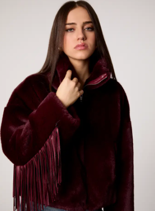 Midnight Merlot Faux Fur Fringe Jacket
