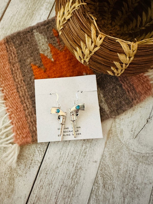 Navajo Turquoise And Sterling Silver Pistol Dangle