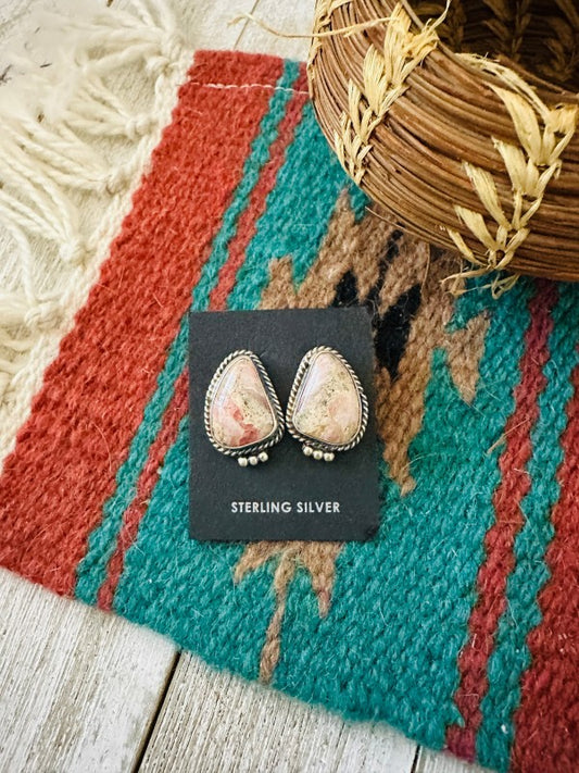 Navajo Rhodochrosite & Sterling Silver Post Earrin