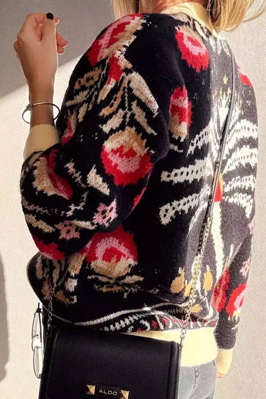 Western Pattern Knitted Button V Neck Cardigan Sweater