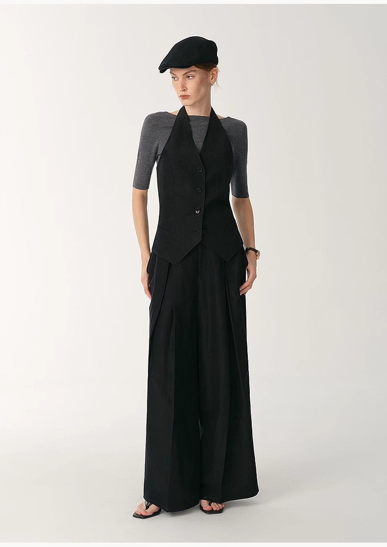 Elevated ease, reimagined. The Rio Silk-Linen Halter Vest fuses classic old-money tailoring with modern sophistication. Its fitted, straight-cut silhouette and short body optimize proportions, while the halter neckline elegantly frames the shoulders and collarbone. Crafted from luxurious 38MM mulberry silk-linen (or Tencel-linen for the mixed brown option), the vest balances glossy refinement with breathable, skin-friendly comfort. Adjustable sleeve openings provide versatility and ease of wear, making Rio perfect for layering over Luxe knits or pairing with high-waist trousers for a polished yet effortless ensemble.