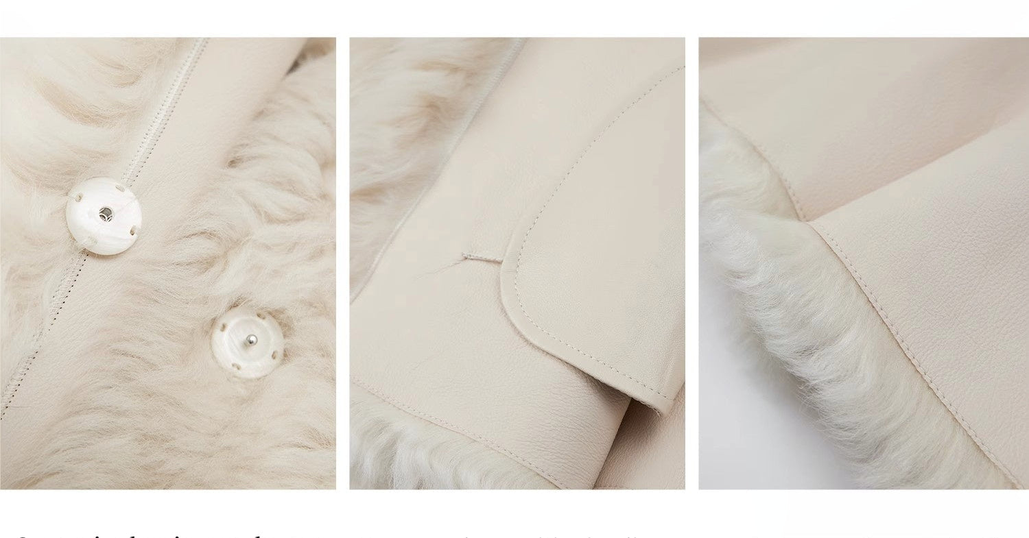 Keywords: Tuscan sheepskin coat, curly wool shearling jacket, stand collar winter coat, luxury winter outerwear, women's shearling coat, soft sheepskin leather coat, warm fur-lined coat